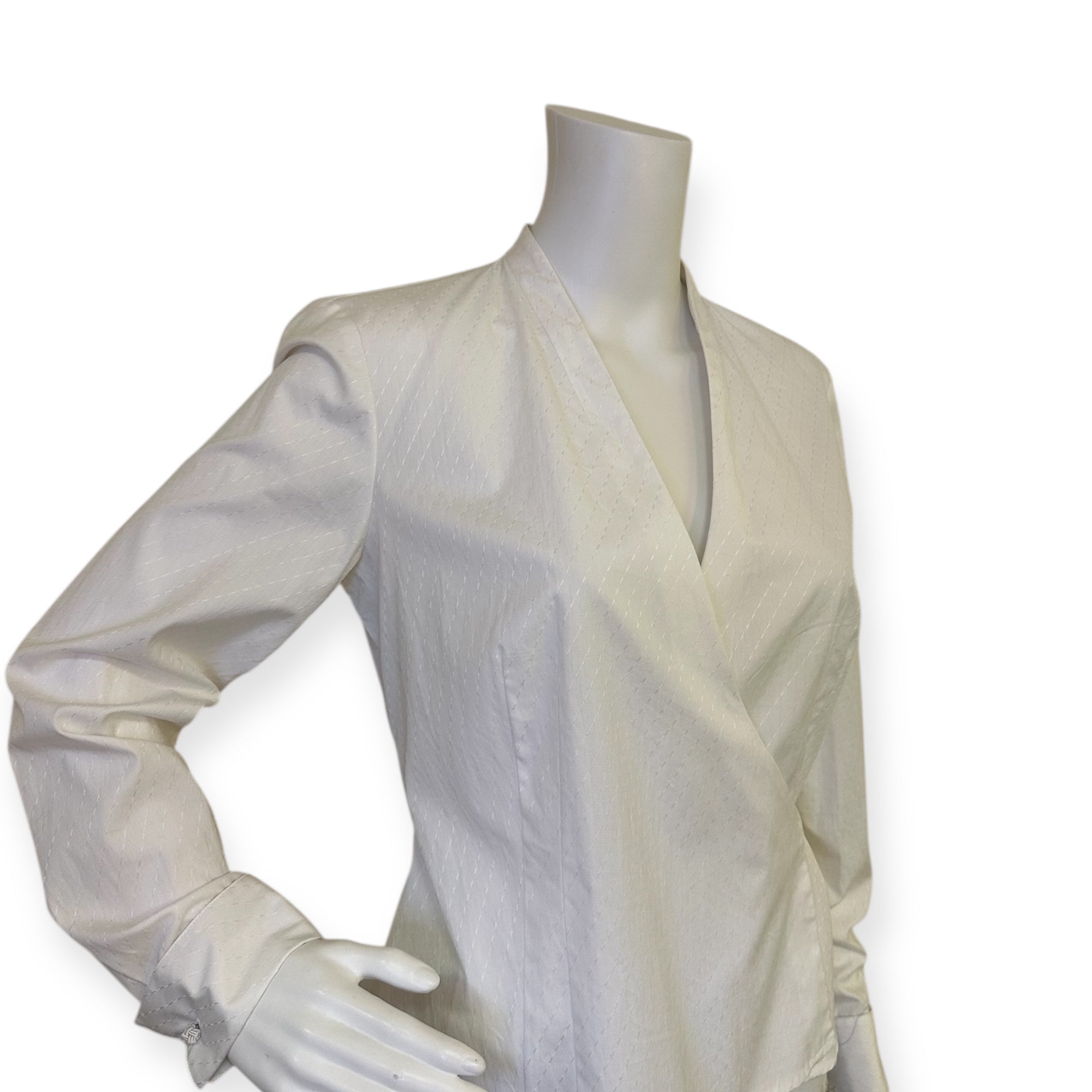 Stylish wrap blouse with long sleeves. Perfect for any occasion.