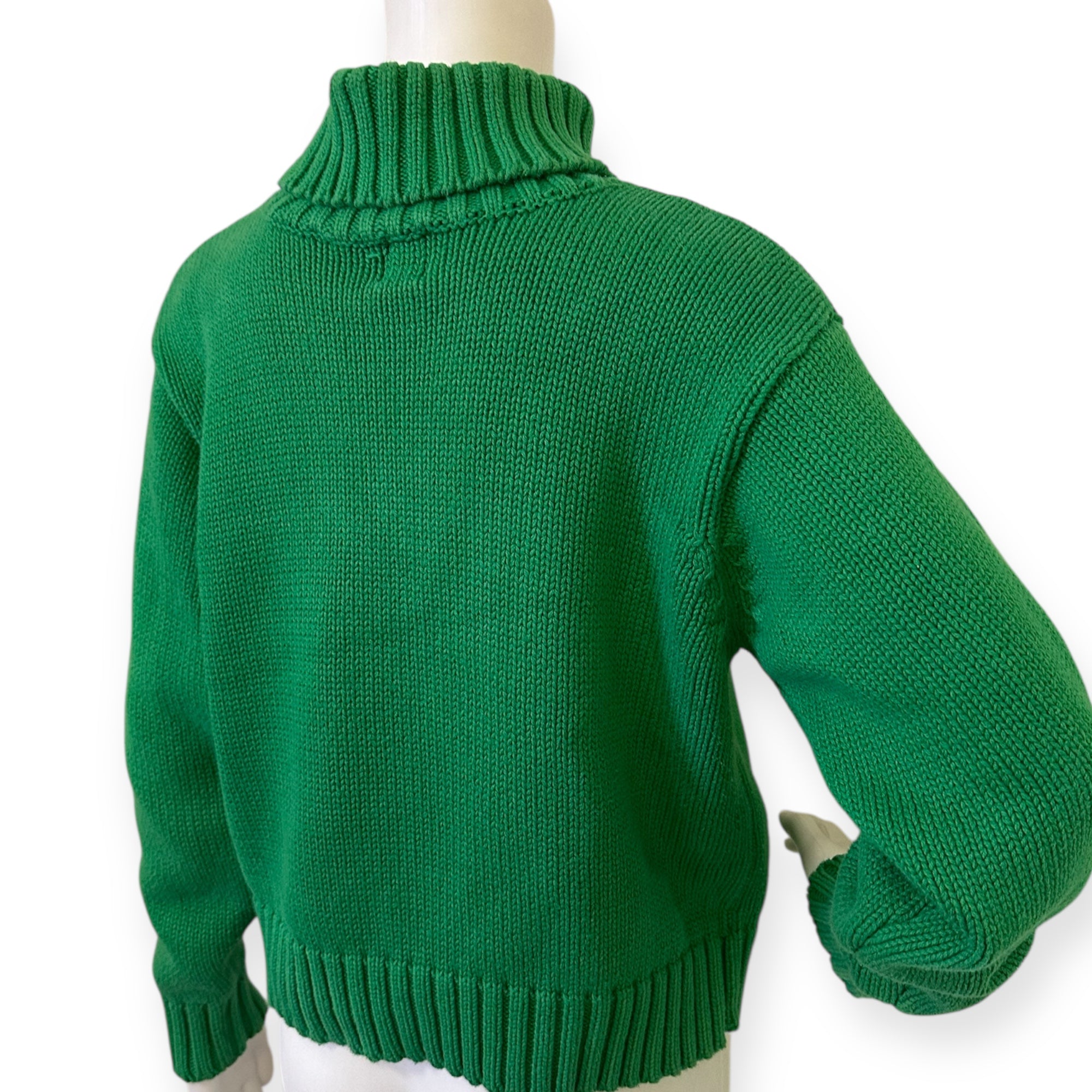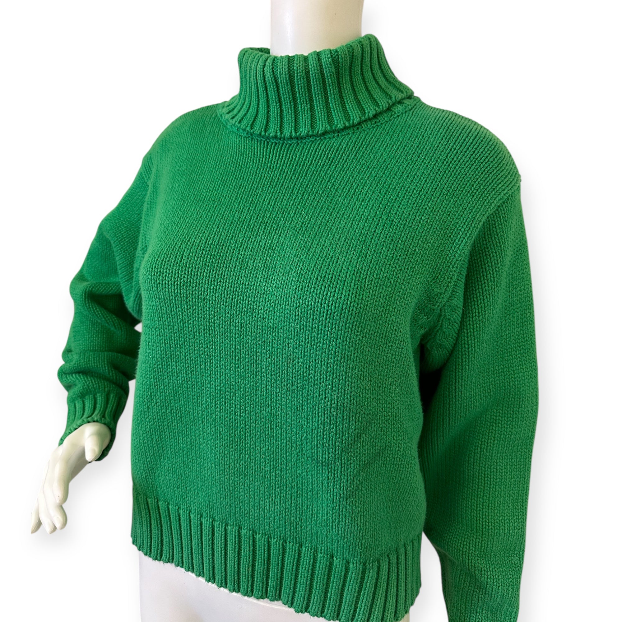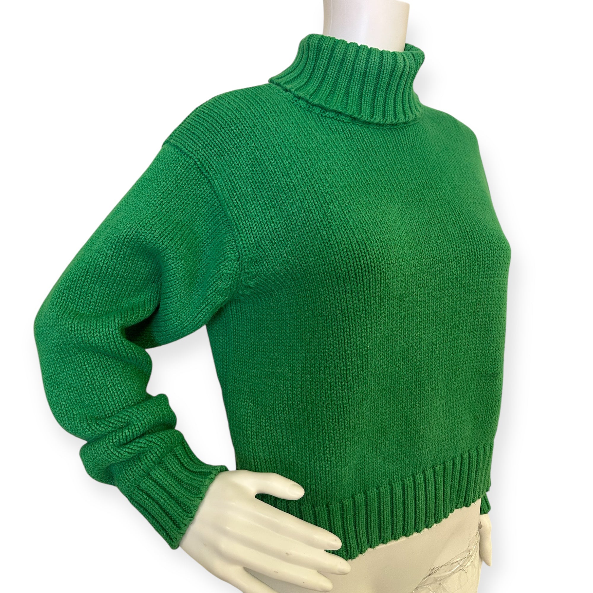 Stay cozy and stylish with this vibrant green turtleneck sweater. Perfect for any occasion.