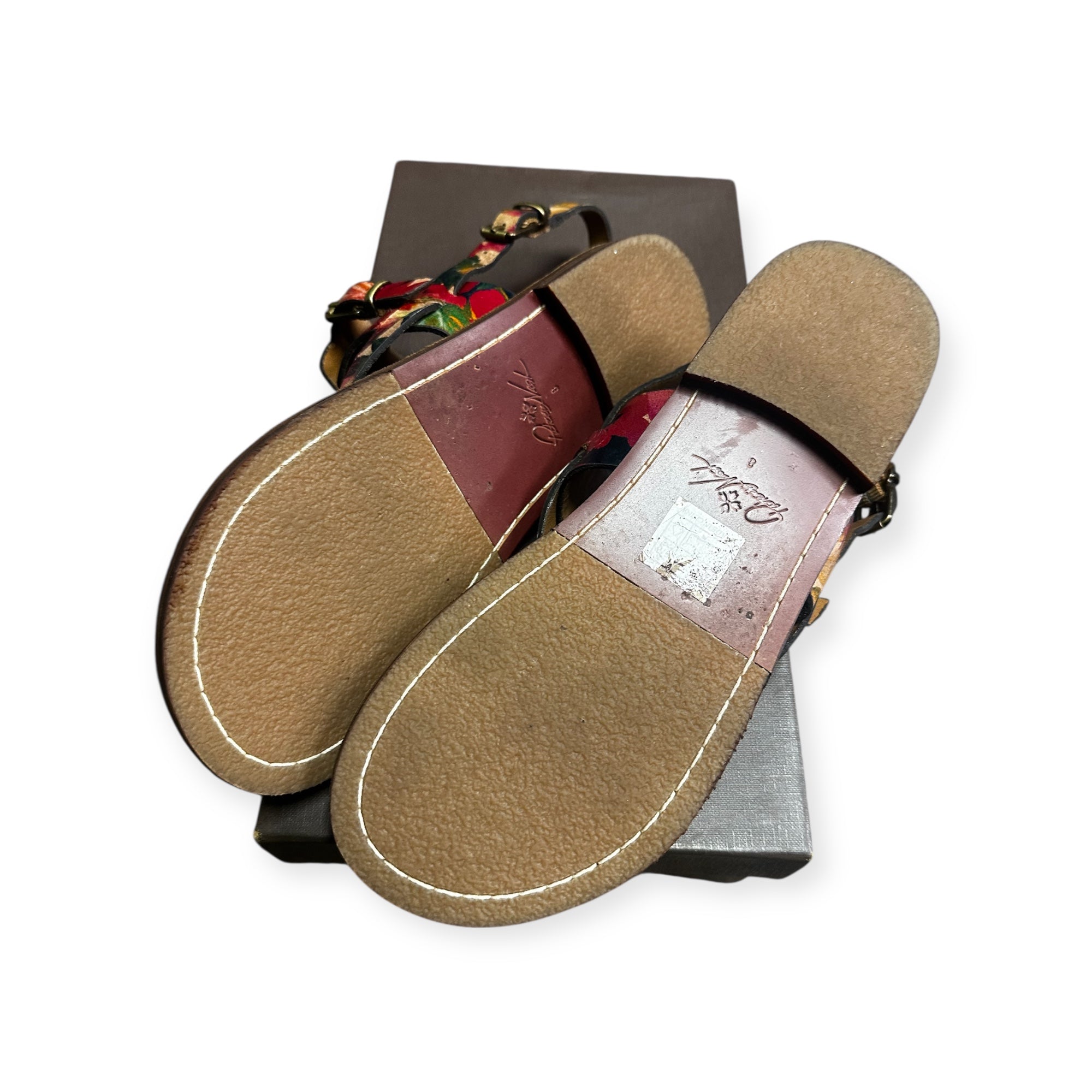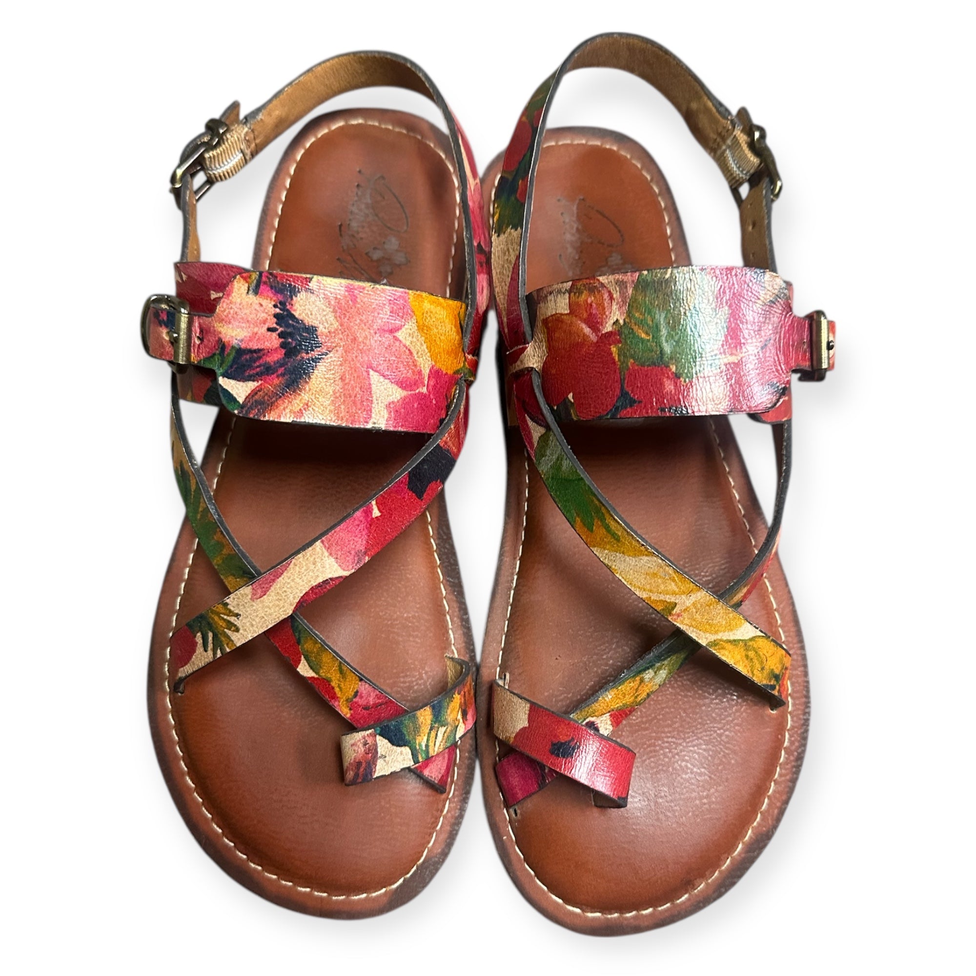 Step into style with these vibrant floral leather sandals. Perfect for adding a pop of color to any outfit.