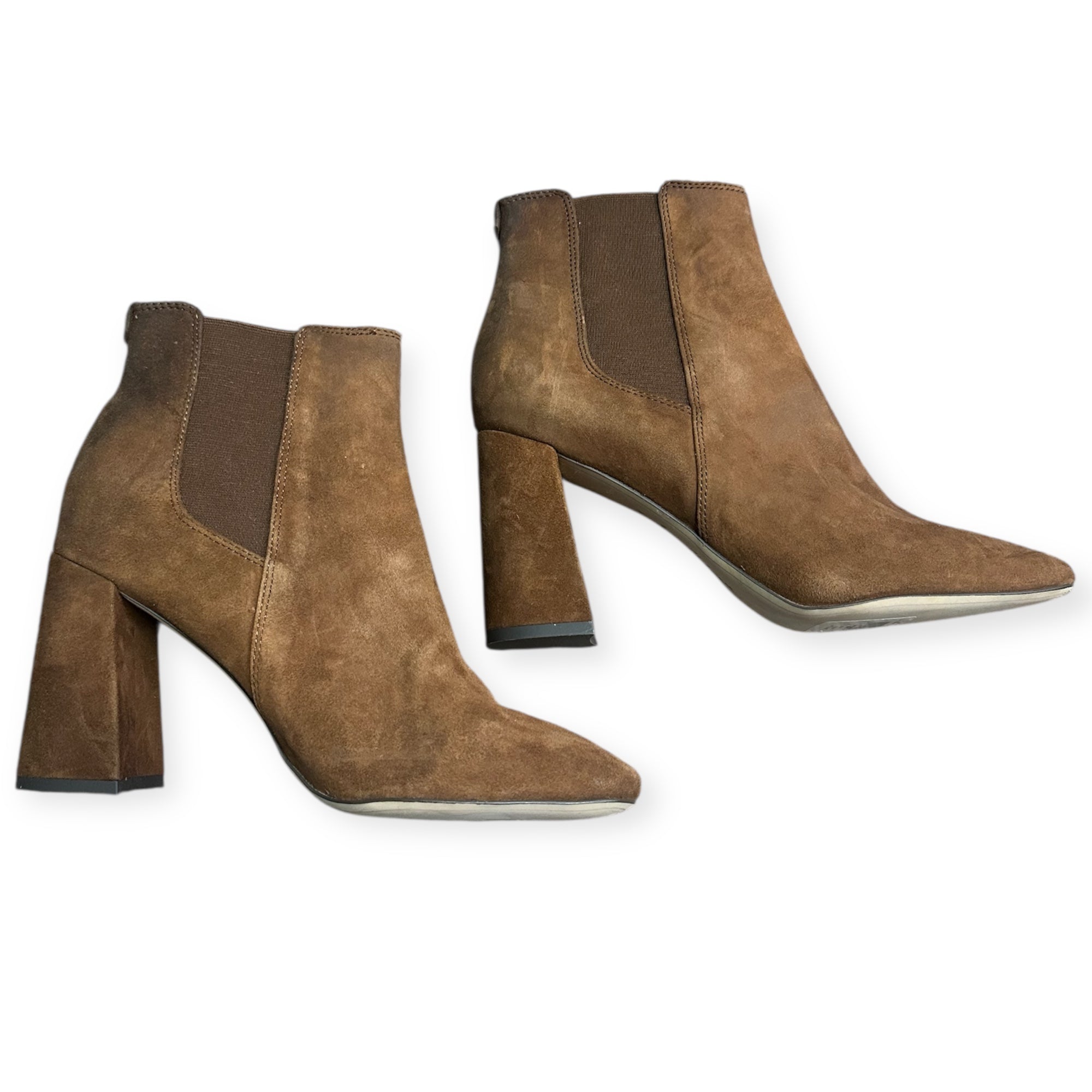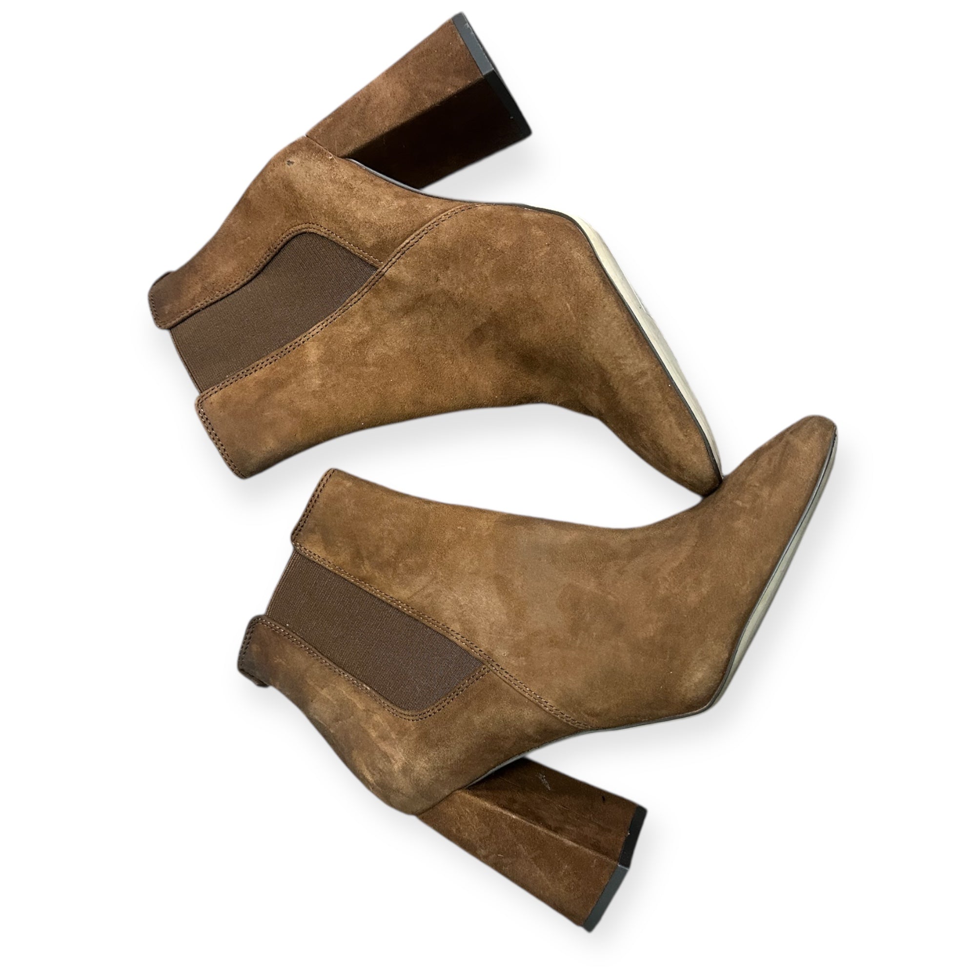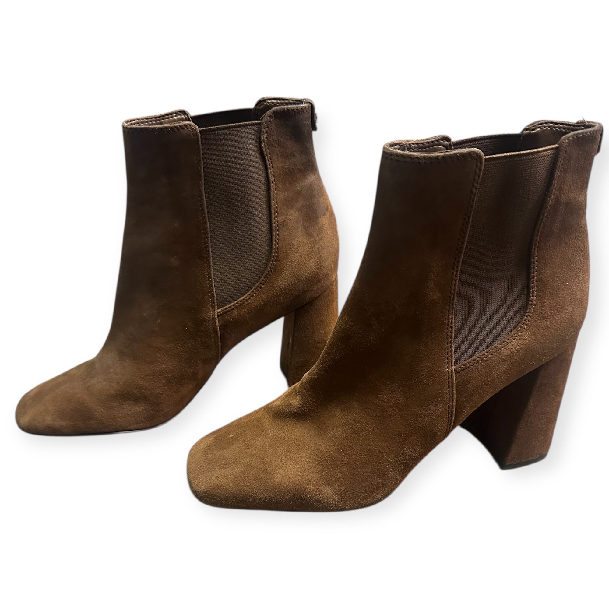 Sam Edelman Suede Stacked Heel Ankle Booties, Camel Brown